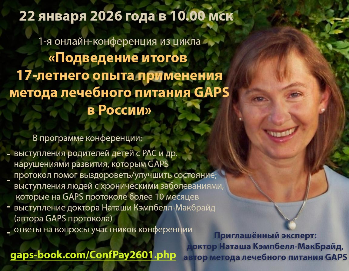 В последние несколько лет Доктор Кемпбелл-МакБрайд обучает медицинских работников по ее программе. Больше тысячи врачей, гомеопатов, остеопатов, специалистов по питанию и других медицинских работников по всему миру обучились, как правильно лечить по программе GAPS. Полный список этих работников можно найти на www.gaps.me.